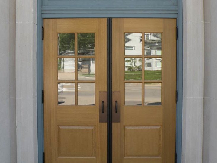 We were awarded the bid to fabricate replacement doors for the City of Ames, Iowa City Hall. The doors were made from White Oak. Since we were fitting doors into the existing frames, the challenge of the project was to machine all the doors for new hardware and hinge locations. Every opening on the doors, the sizes, and the hinge locations were different. The project also included some trim (dentil and raised panels) above most of the openings.