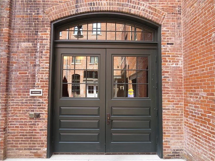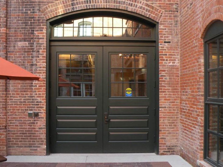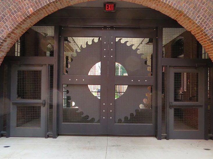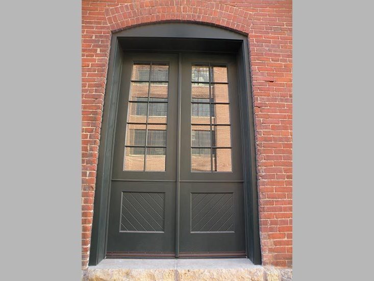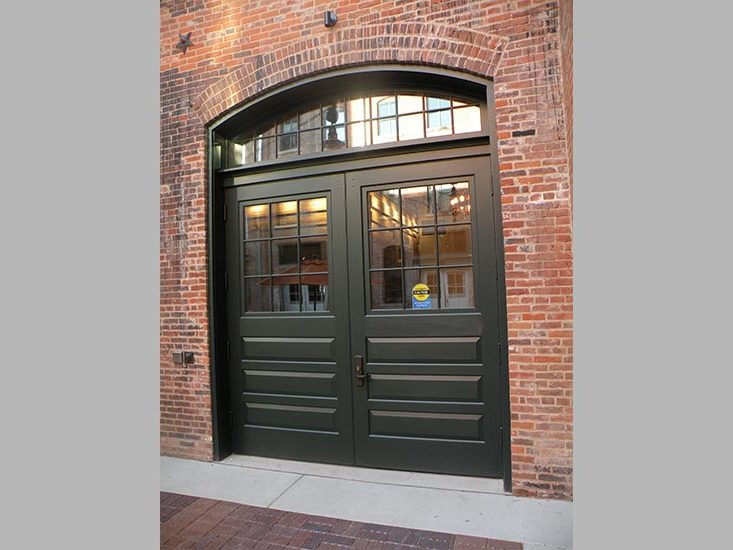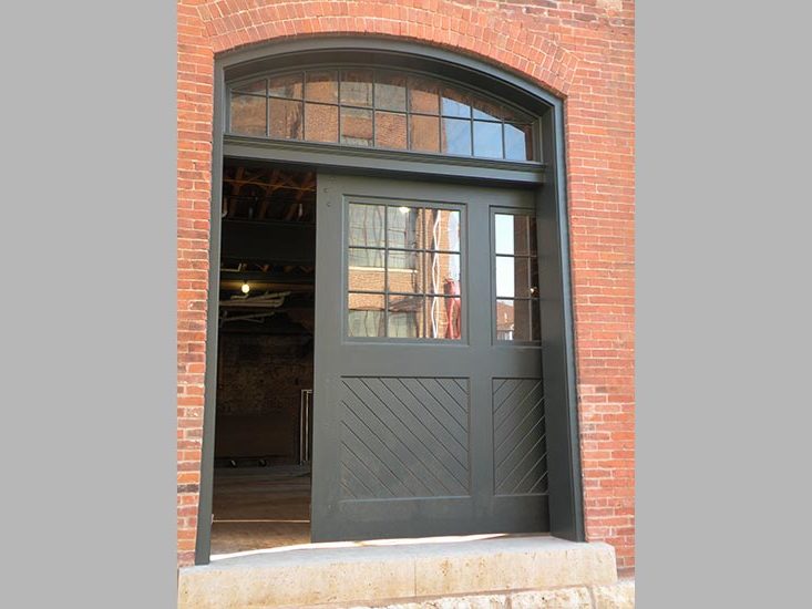 Adams Architectural Millwork Co. manufactured some very large doors for an old window and door factory. All doors were fabricated using mahogany to make them more resistant to the elements. These doors were fabricated up to 3″ thick. Many of the doors are hung using roll-away hardware.