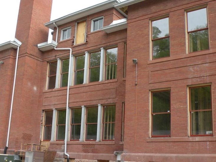 We were selected by a developer to provide window sash only on a historic tax credit property. The owner of the property needed to take out the old aluminum Devac windows and replace with historically accurate single hung sash. The sash were fabricated from Northern White Pine. We also used energy efficient insulated glass. We used a concealed balance system in the bottom sash to balance the windows when opened. We also made new entryways (double doors with transom) for two of the entrances.
