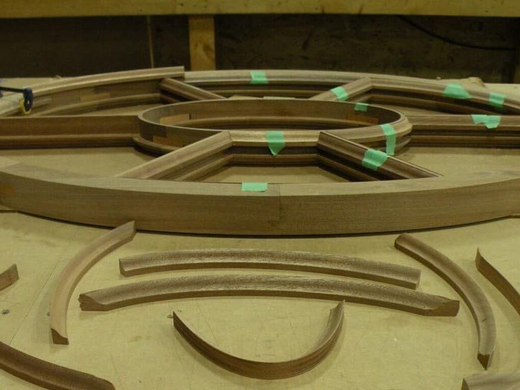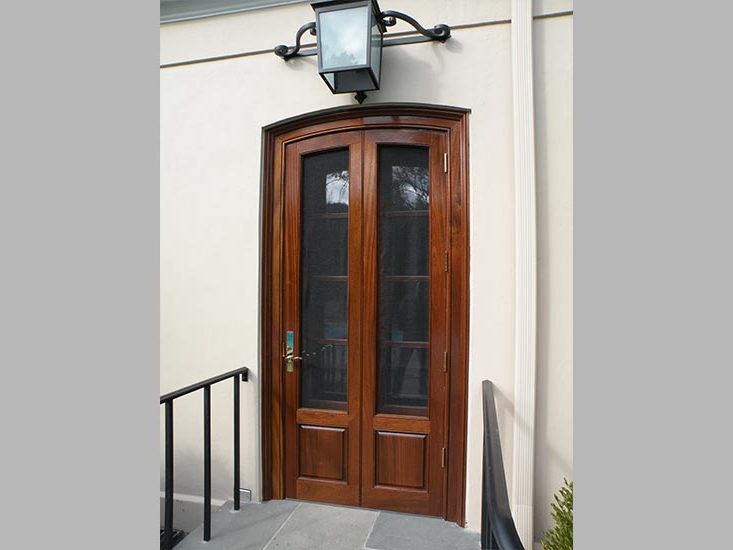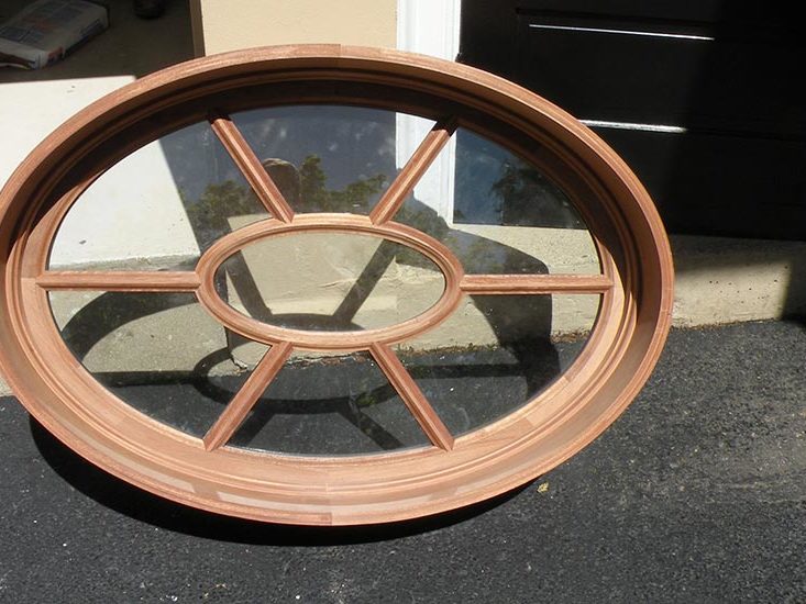 Phase #1 – Adams Architectural Millwork Co. built several weight and pulley single hung windows, custom entry doors with custom combination storm/screen doors. Also built an oval window with Tru-divided lites and a jamb. All products were fabricated from Mahogany.