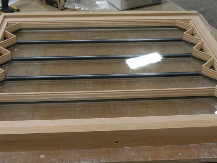 We also made several custom interior doors to match the existing door, entry door using the customer’s stained glass, as well as a door to the turret on the third floor.