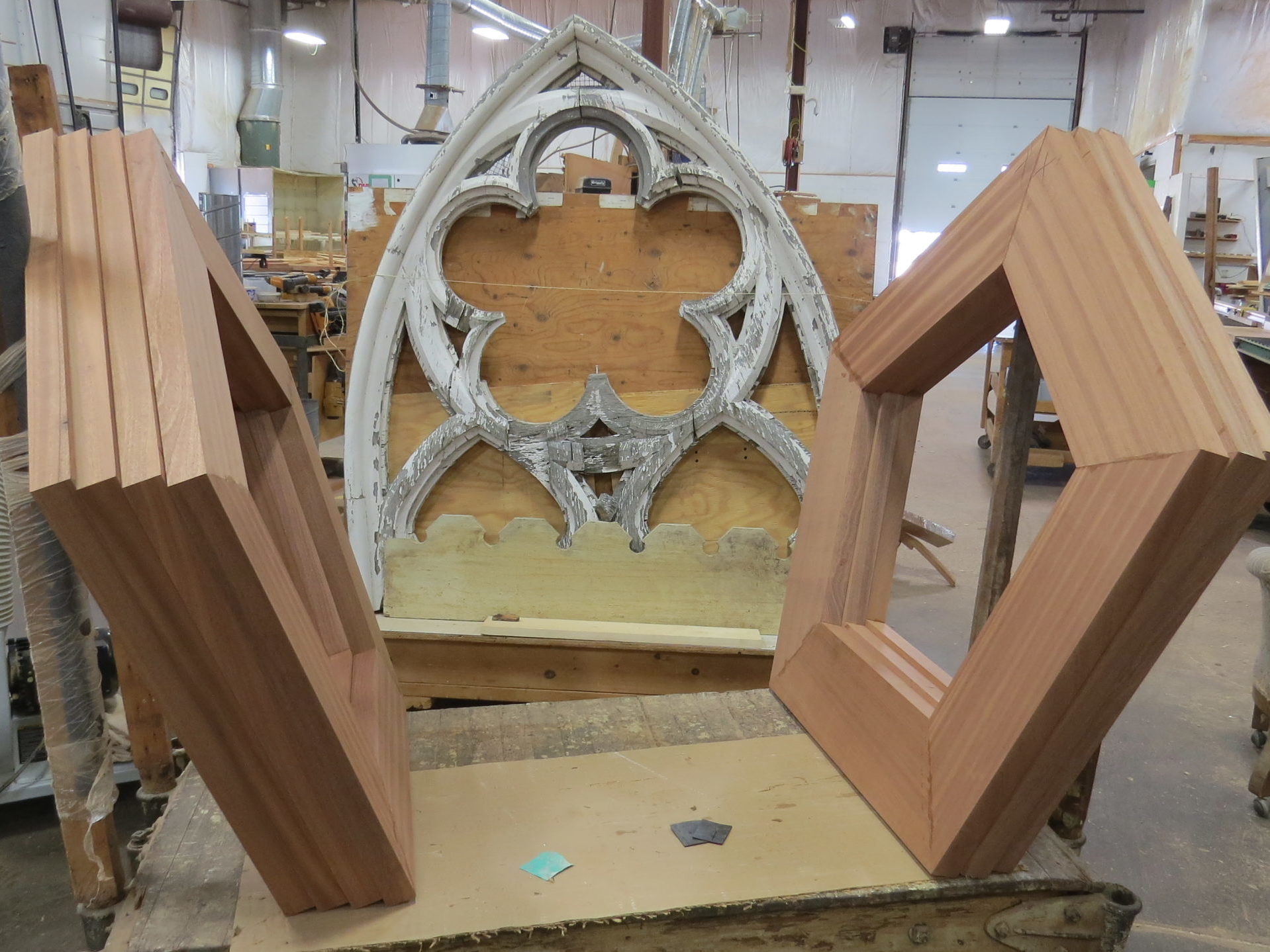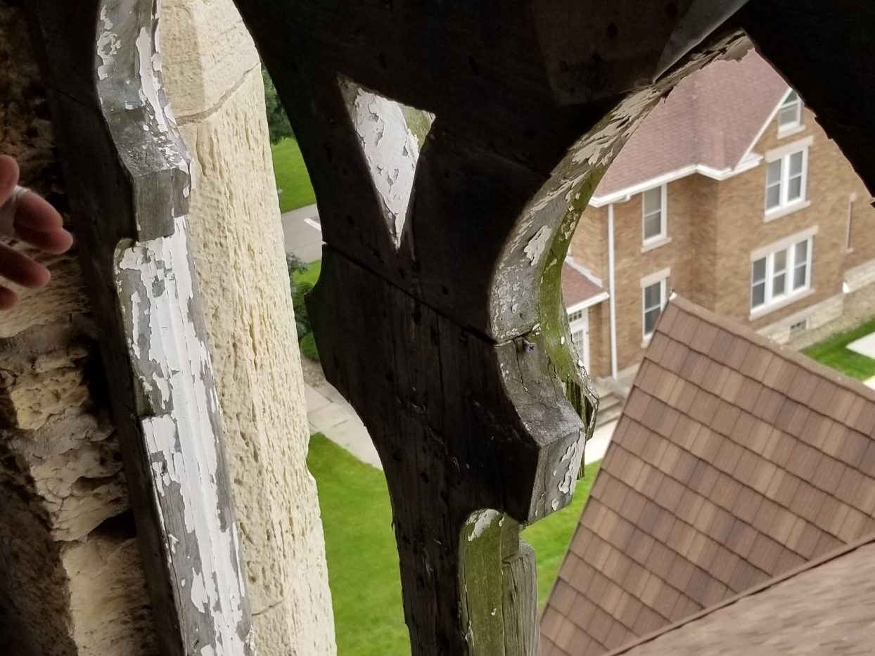 Adams Architectural Millwork fabricated the intricate steeple decoration topper as well as the patterned louvers for the steeples. Our CNC machine was used to create the beautiful details to be an exact replica of what time had worn away of the original. The symmetrical clover-shaped steeple ornaments combine with the height of the steeples to be a classic example of Gothic Revival Architecture.